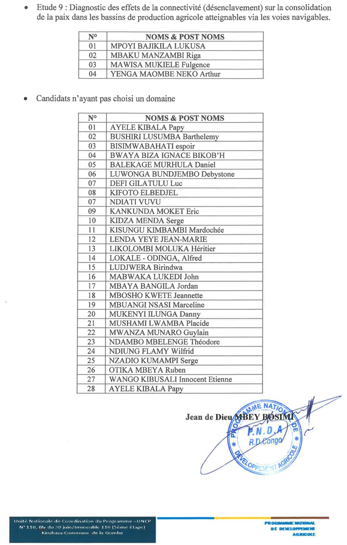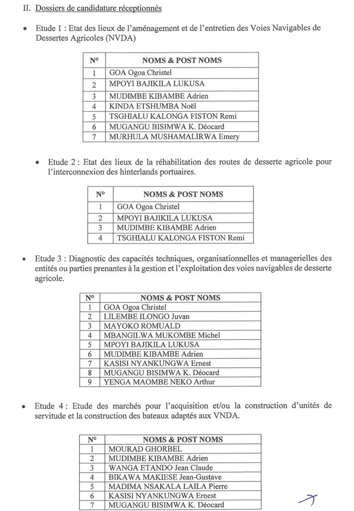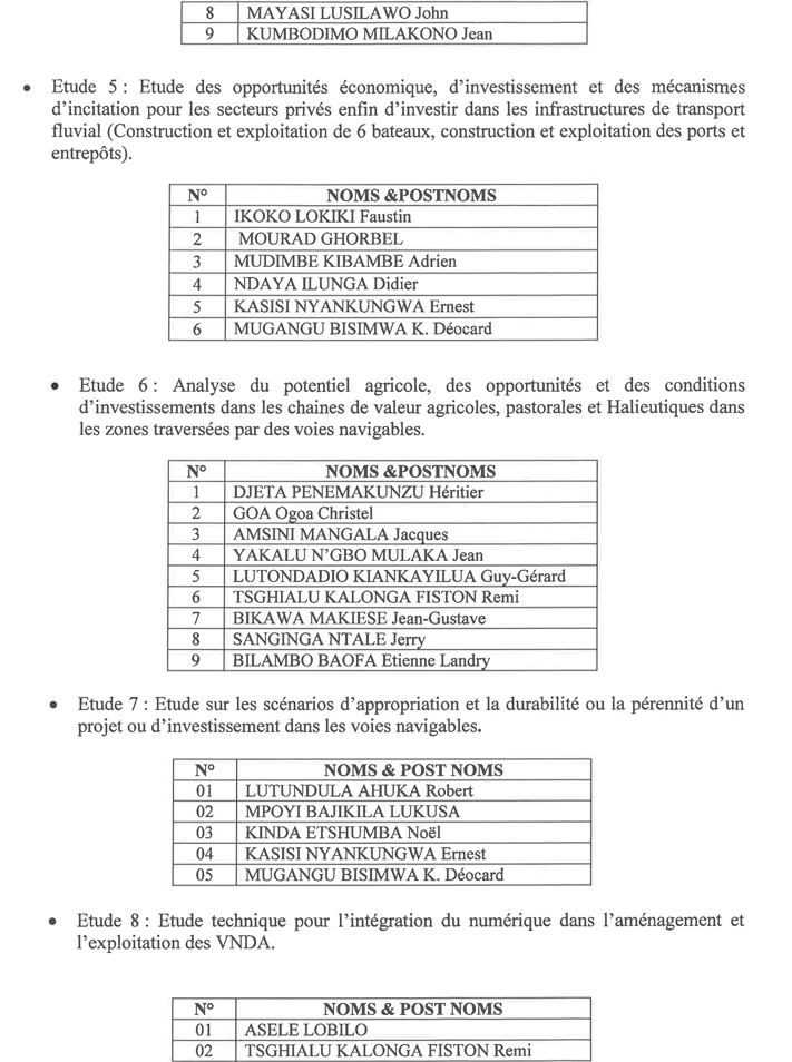 Attribution de Marché Consultants individuels chargés d’élaborer des termes des références des études prioritaires pour la préparation d’investissements futurs dans les voies navigables des dessertes agricoles en RDC