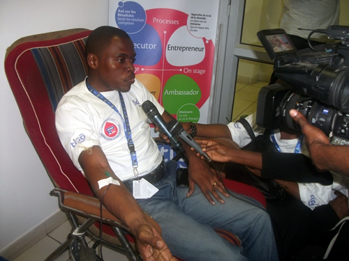 Devant la presse, les agents et autres bénévoles, le Directeur Général de TIGO RDC, Abdellatif Bouziani, a été le premier à participer à l’édition 2011des opérations de don de sang ; il a rempli sa fiche de donneur de sang, sa pression artérielle a été prélevée, et il a subi les autres préliminaires, essentiels avant toute prise de sang. Après consultation médicale, le Directeur Général de Tigo RDC s’est vu remettre le kit de donneur bénévole de sang composé de poches et de seringues. L’opération s’est déroulée sans anicroches, et Mr Bouziani n’a pas caché sa satisfaction quant à l’engagement de son entreprise dans les différentes campagnes de don de sang.